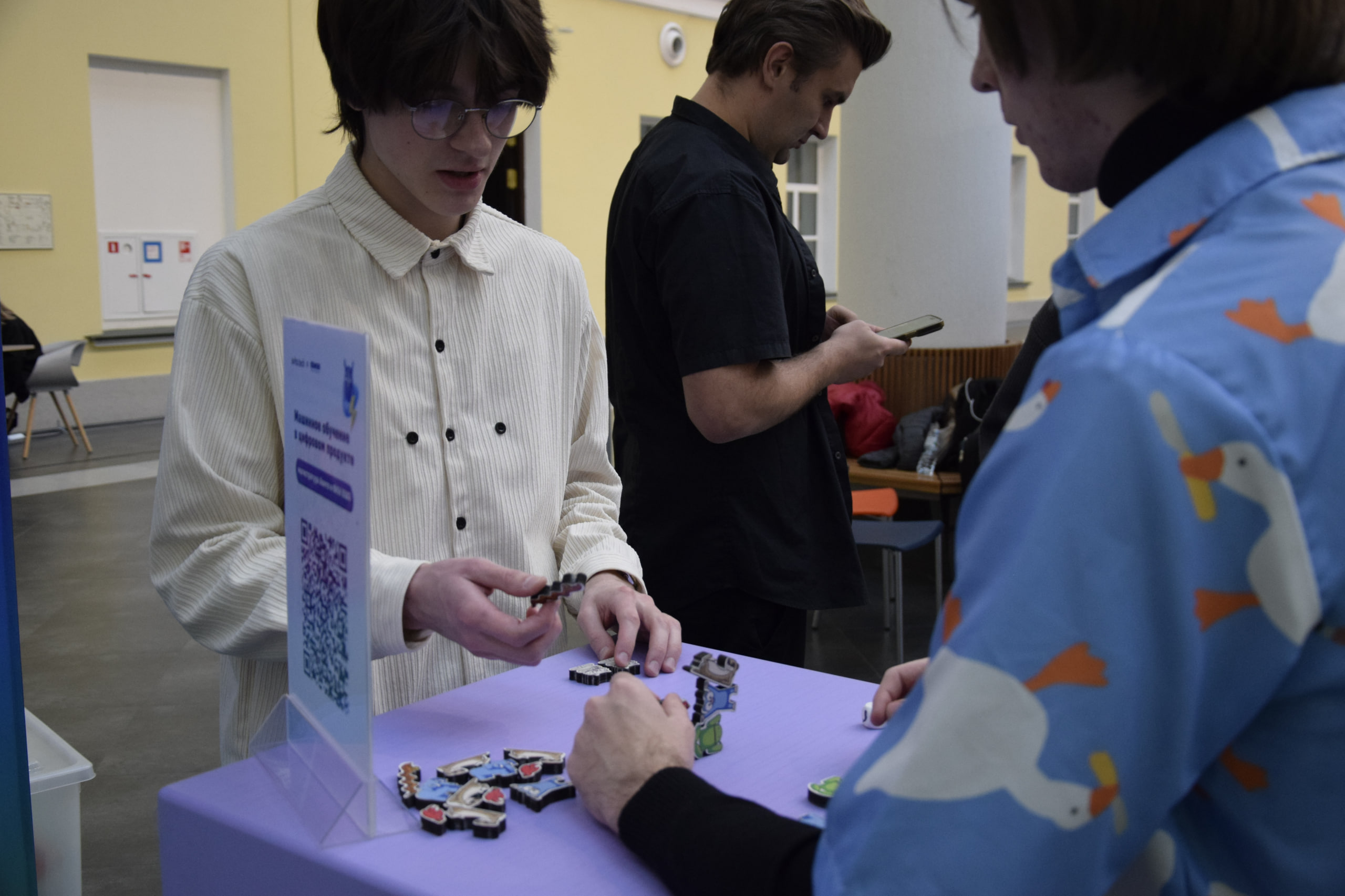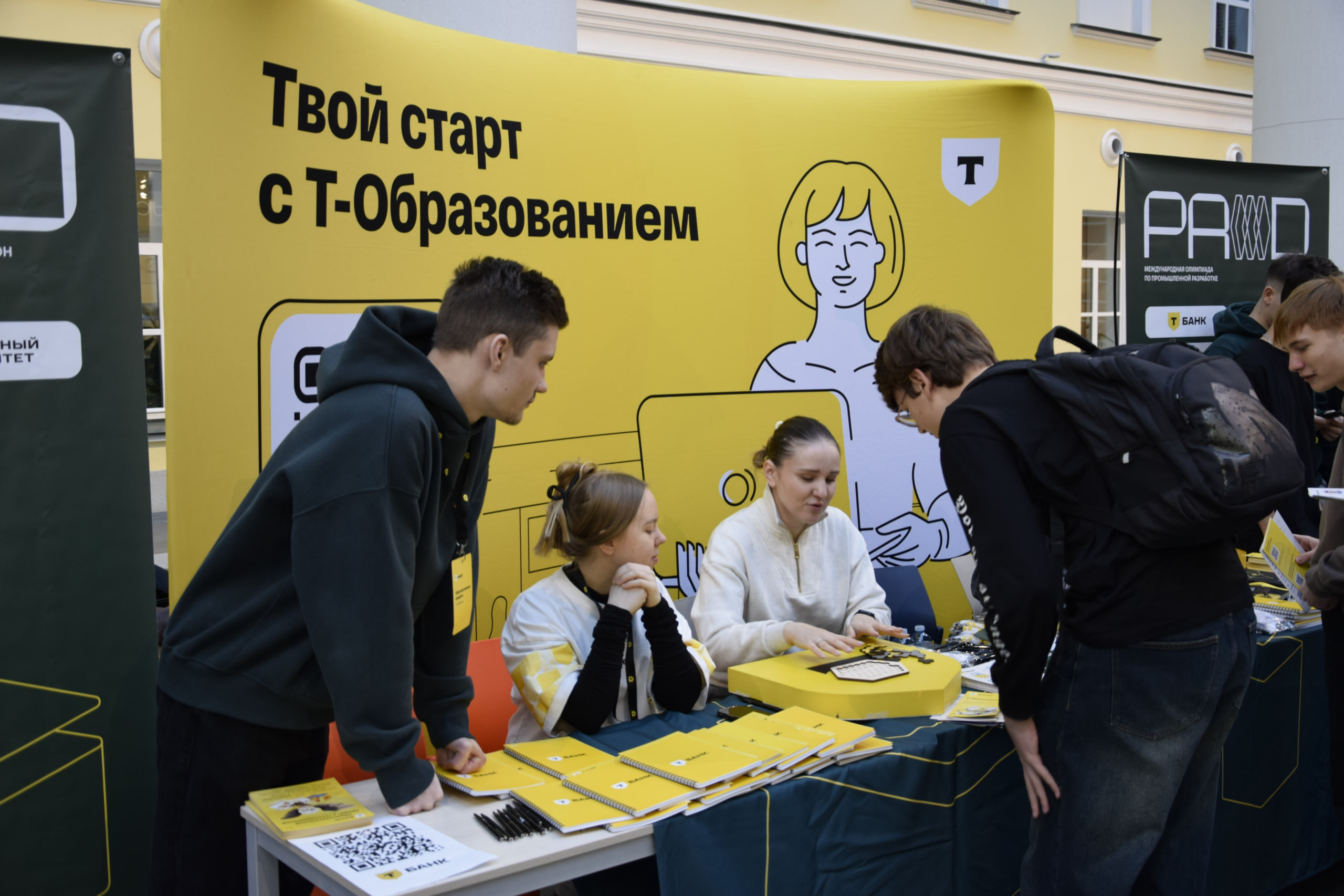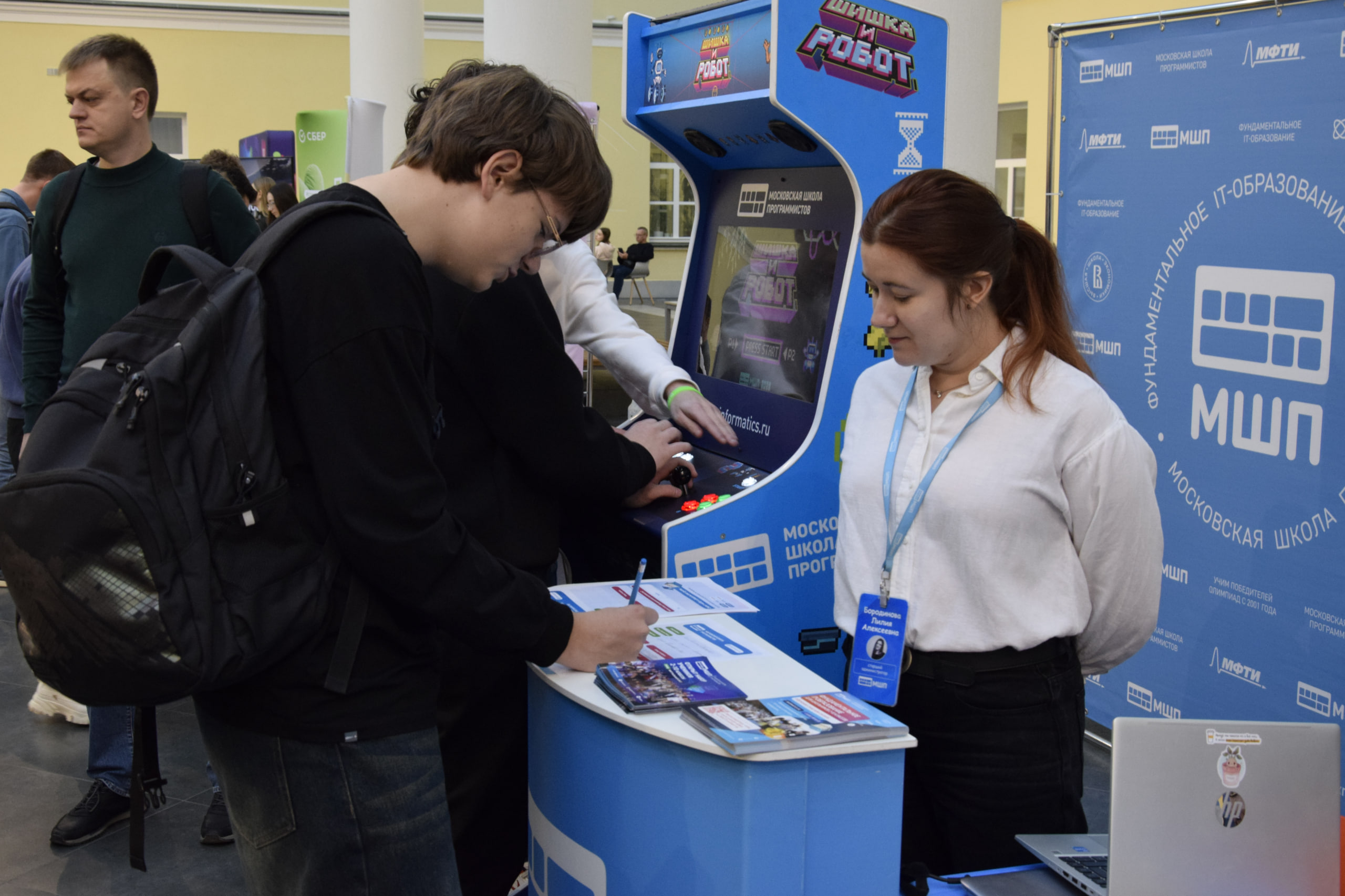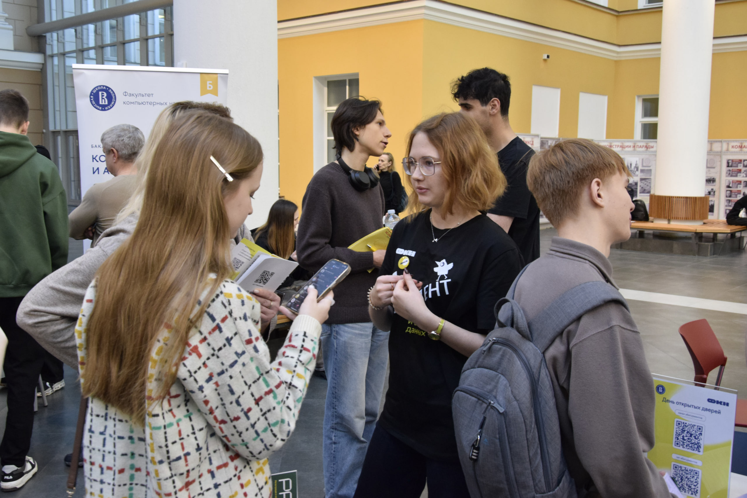 Мероприятие началось с образовательной выставки для абитуриентов, на которой гости могли пообщаться со студентами и академическими руководителями программ бакалавриата, а также менеджерами программ магистратуры. Помимо этого у абитуриентов была возможность познакомиться с компаниями-партнерами ФКН: «Т-Банком», Яндексом, 1С, МТС, «Сбером» и «Авито».