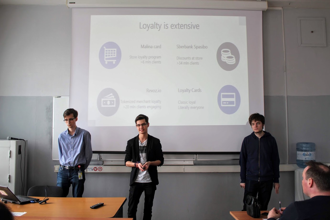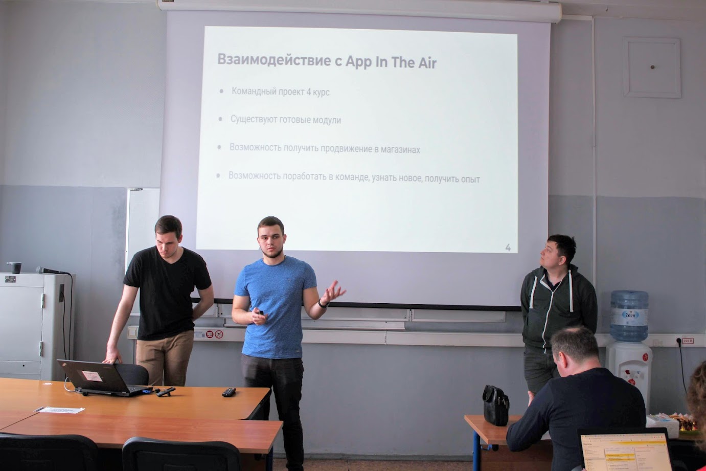 Команда студентов 2 курса ПИ (Дарья Редникина, Анна Михалева, Илья Костюченко, Константин Манежин ), выполнившая проект "Социальная сеть сотрудников НИУ ВШЭ" под руководством Марии Горденко. И команда под руководством Хади Салеха (компания ООО "Бизнес.РФ"), в составе которой были студенты 4 курса ПИ: Антон Ригин, Андрей Нагаев и Александр Плесовских, с темой "Платформа для поддержки проведения конференций «Conforoom»".